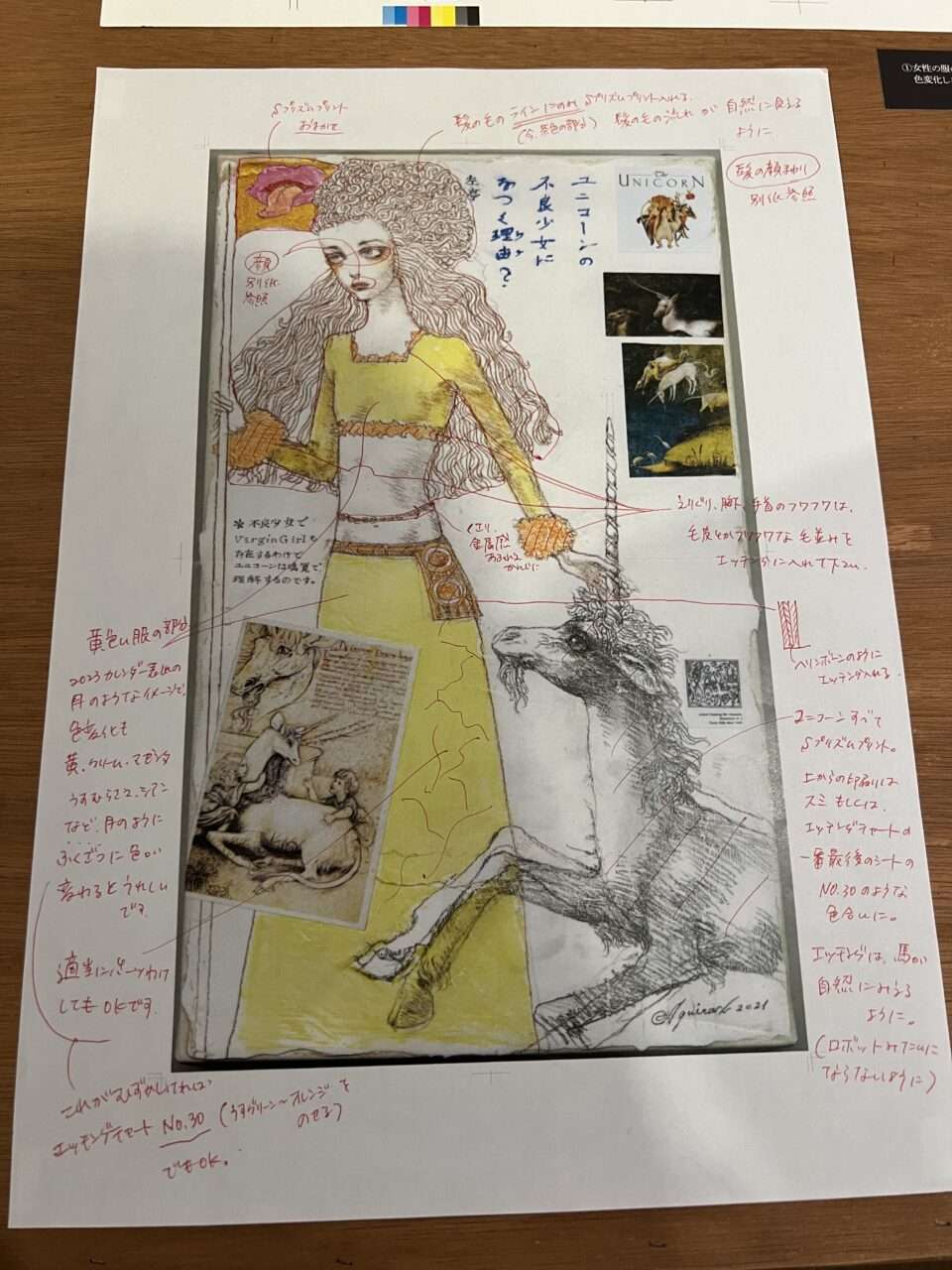 初稿や校了,箔版など普段見られないような作品・展覧会の裏側を存分に見られて印刷技術が好きな人なら興奮できるだろう.御本人直筆のメッセージが見られるのもファンにはたまらない.宇野さんの「すばらしいです!」がいっぱい書かれていて,微笑んでいる姿を想像した.